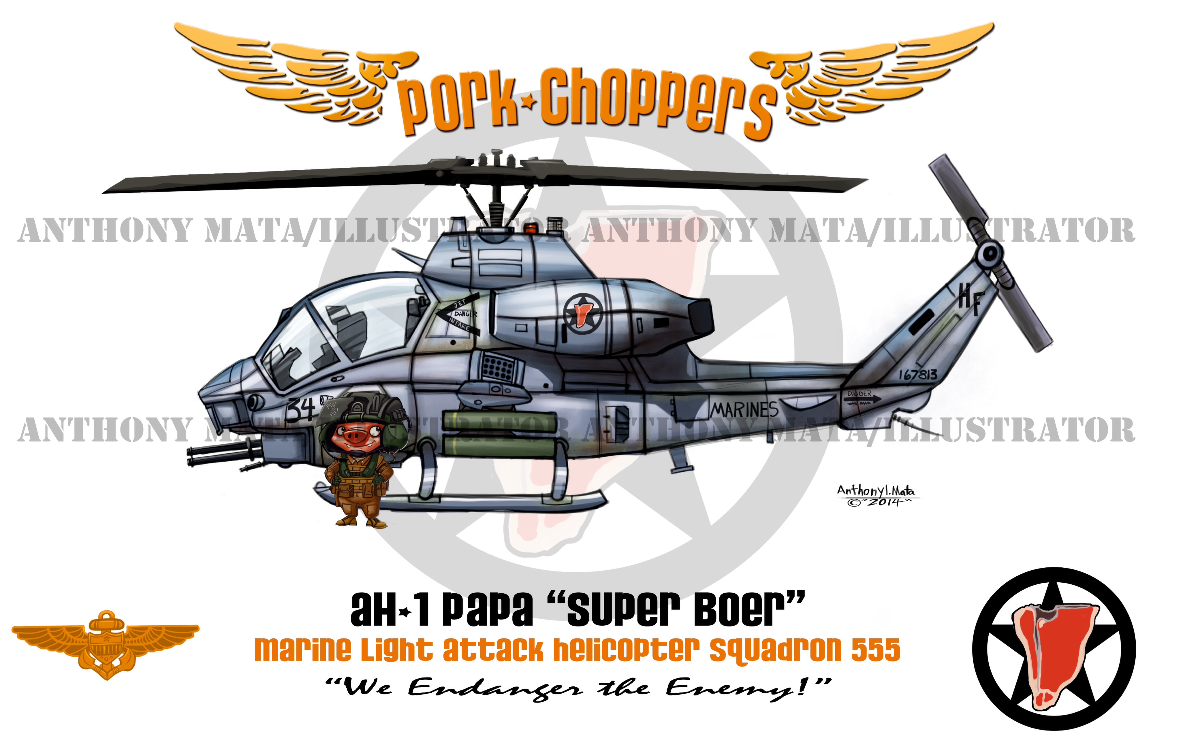 A mash-up of modern day weapons and the animals that use them. created using a bunch of programs. Procreate paint app, CS illustrator, Indesign, and Photoshop.